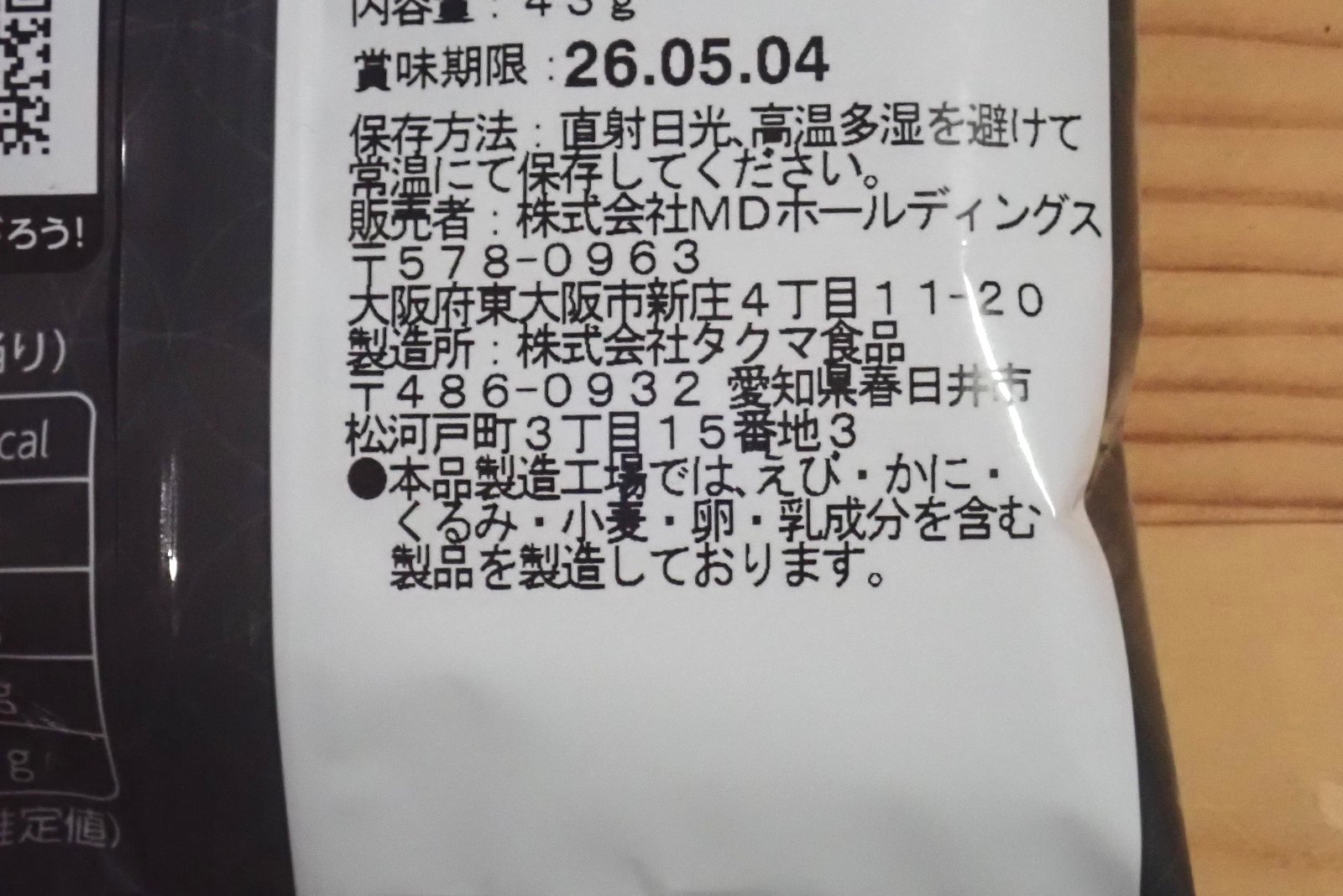 開封後は賞味期限にかかわらず、早めにたべましょう。また、品質に不都合があった場合は、代品と替えてくれるとのこと。MDホールディングスさん、しっかりとした会社ですね!