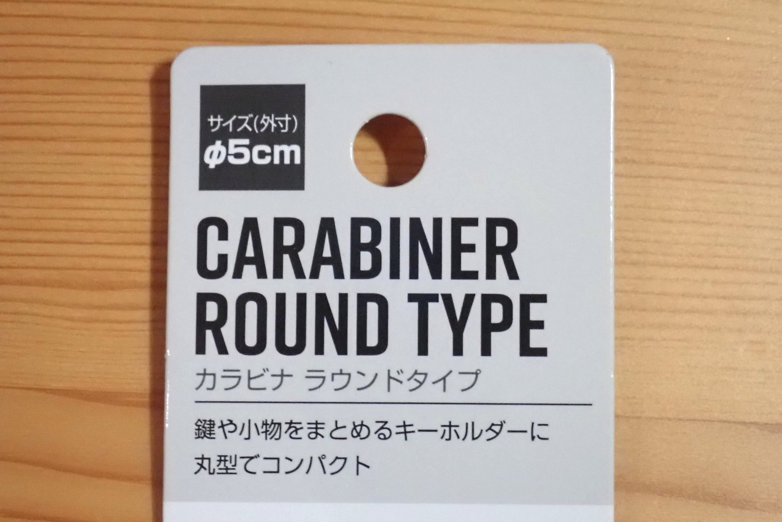 お、カラビナって英語で書くと「CARABINER」、ラウンドタイプ(丸形)は「ROUND TYPE」なんですね。ほうほう。