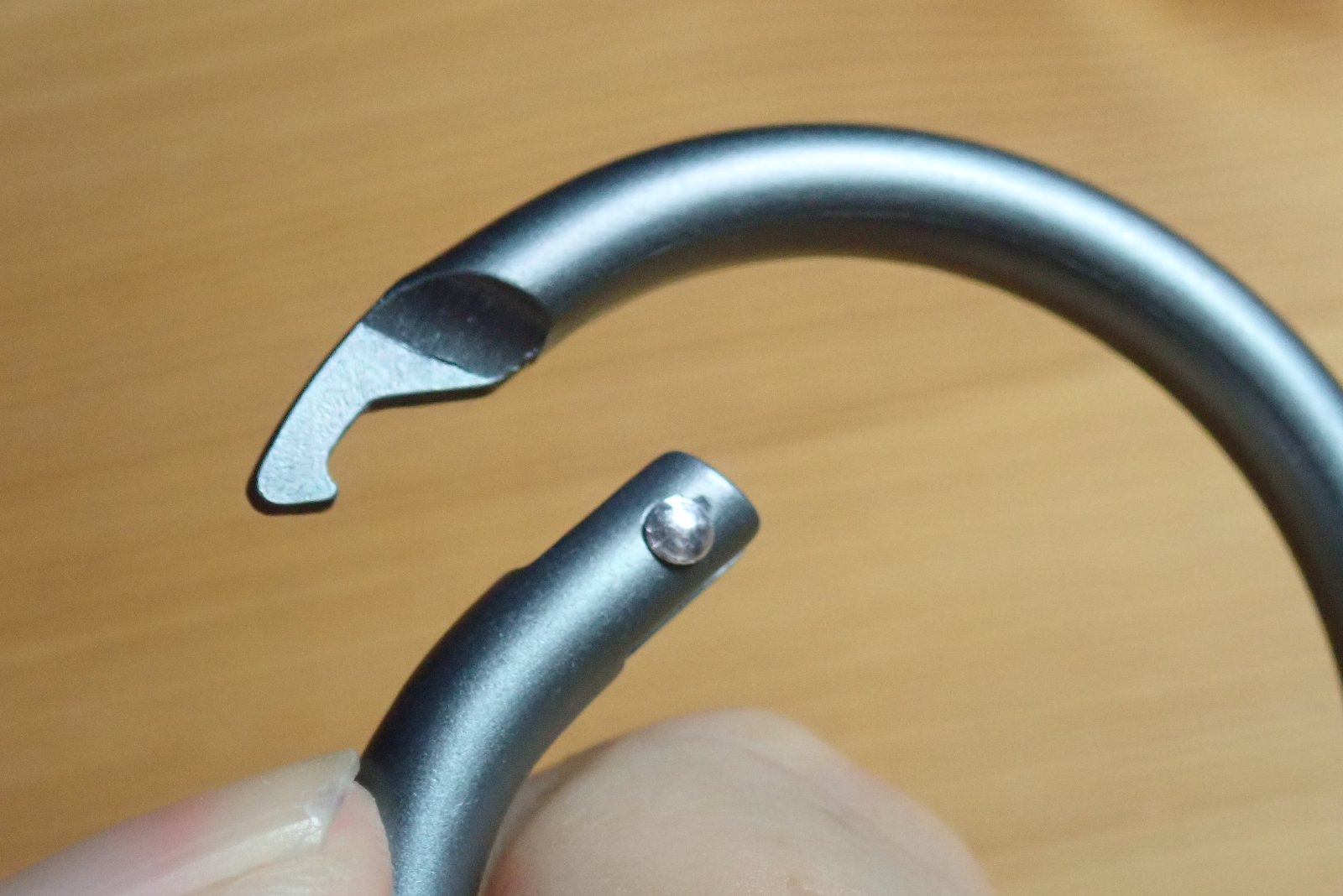 大きさの割にゲートが大きく開くラウンドタイプのカラビナ