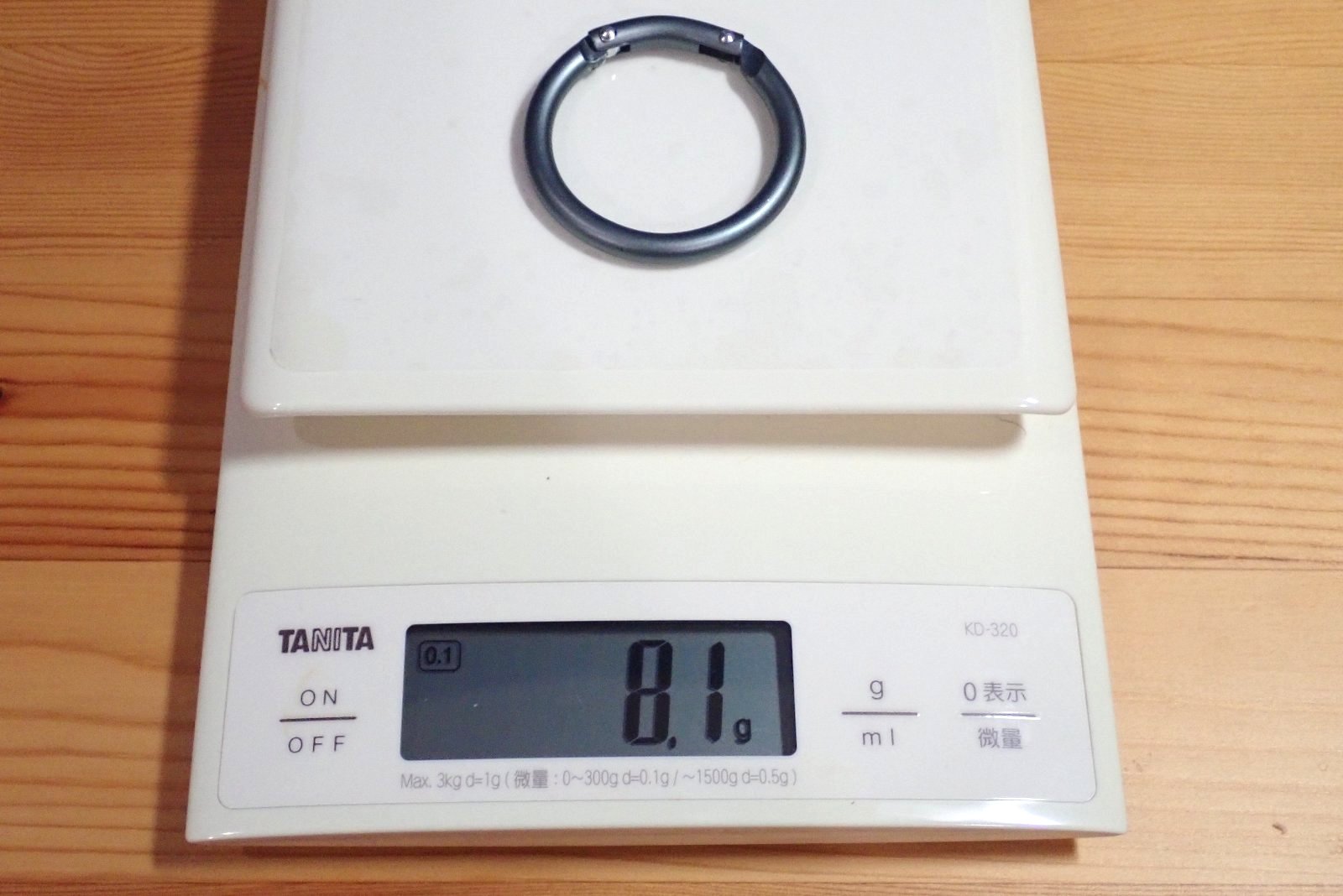 アルミニウム製ということだけあって、軽量です。10円玉より軽いという事になりますね。これなら、気になる事も無いかと思います。
