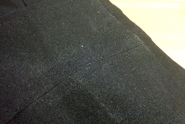 ちょっと部屋の隅のホコリっぽいところにスラックスを押し付けて、わざと汚してみました。