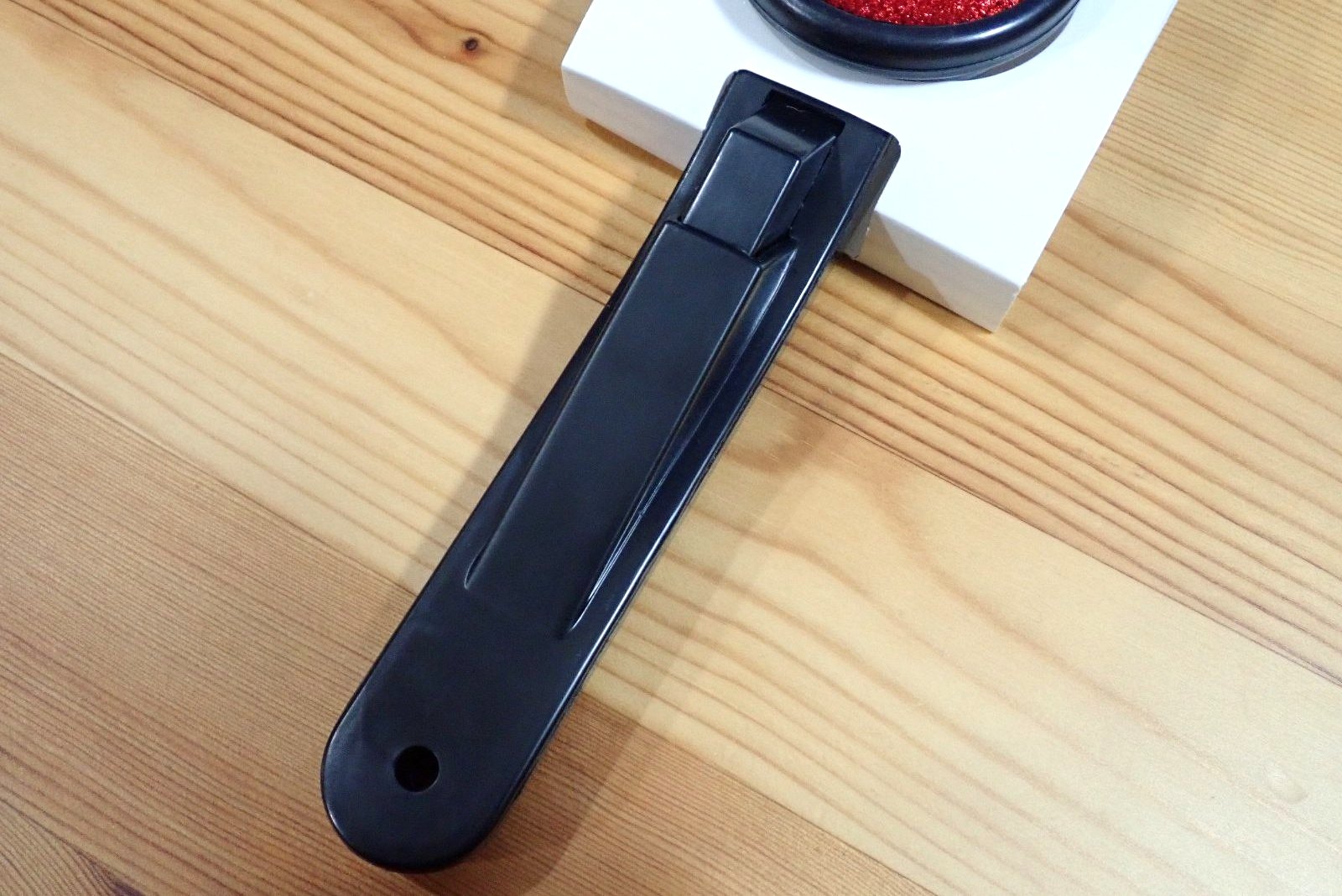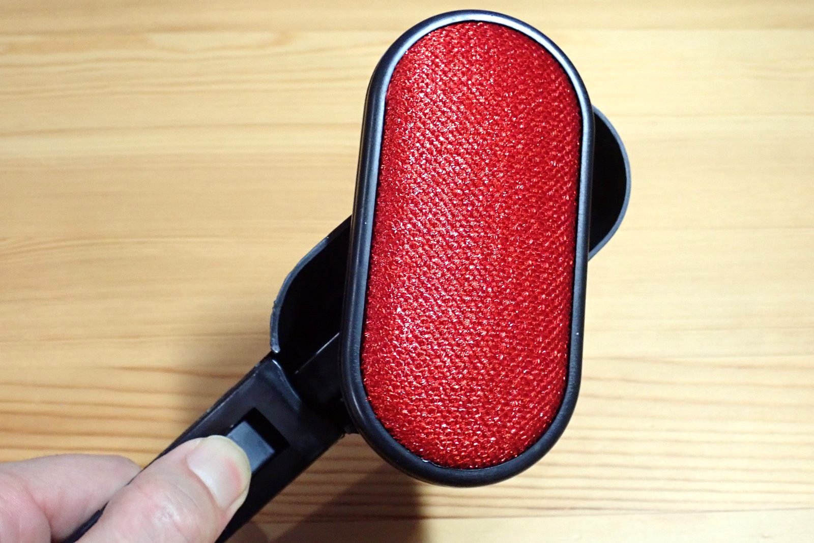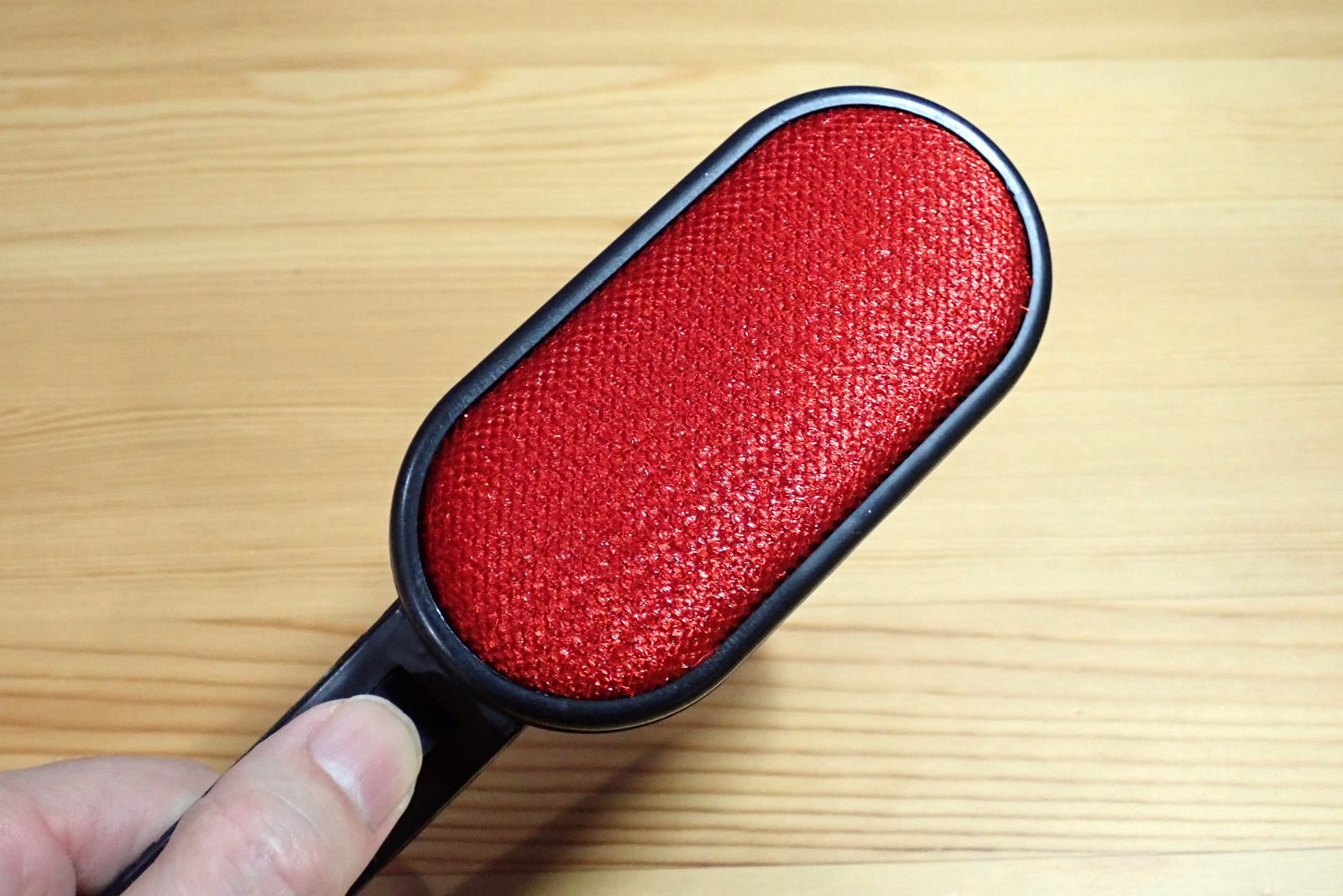 - その他:柄のところにボタンが付いていて、押すたびにブラシ部分が回転します。短い起毛タイプの洋服ブラシは、ホコリを取ることができる方向があり、逆方向になるとホコリが出てきてしまいます。