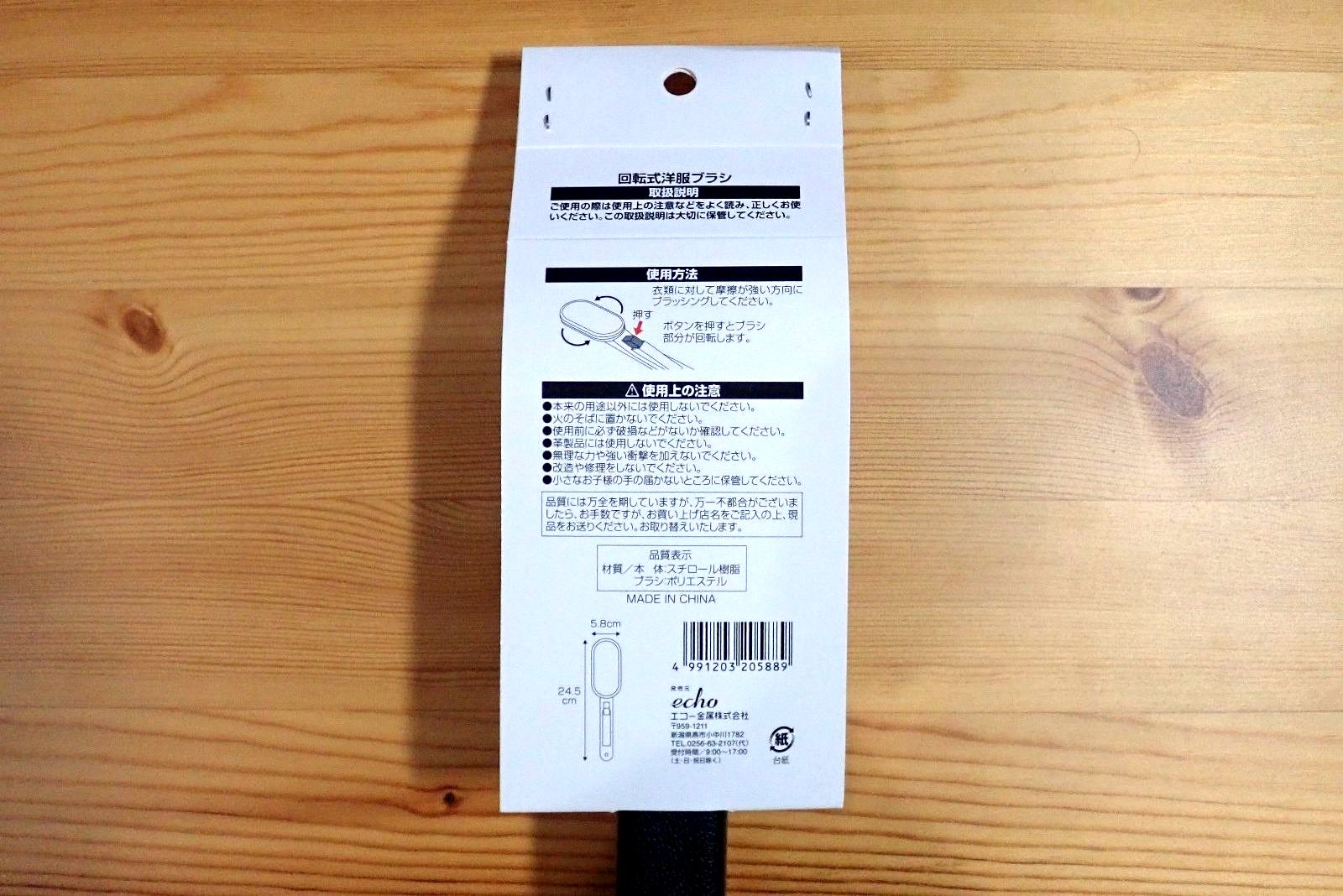まずは回転式洋服ブラシ、パッケージをつけたまま正面写真