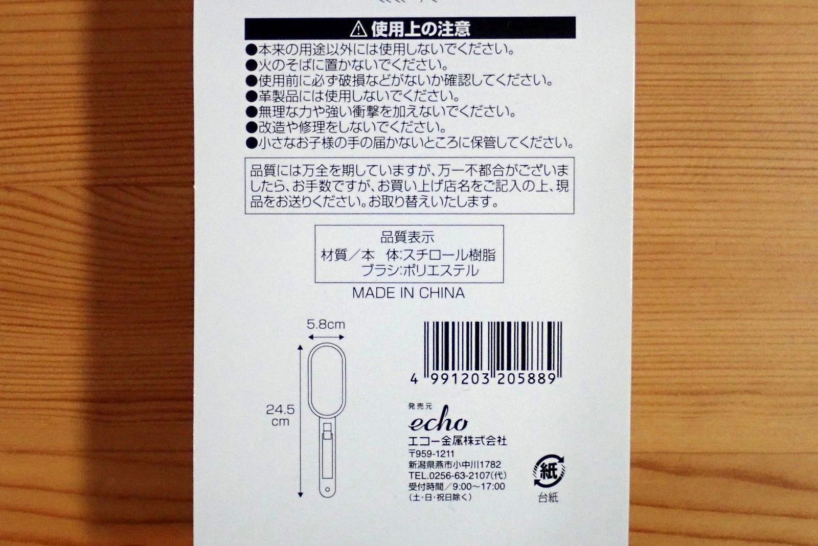 - 材質等:本体・スチロール樹脂。ブラシ・ポリエステル