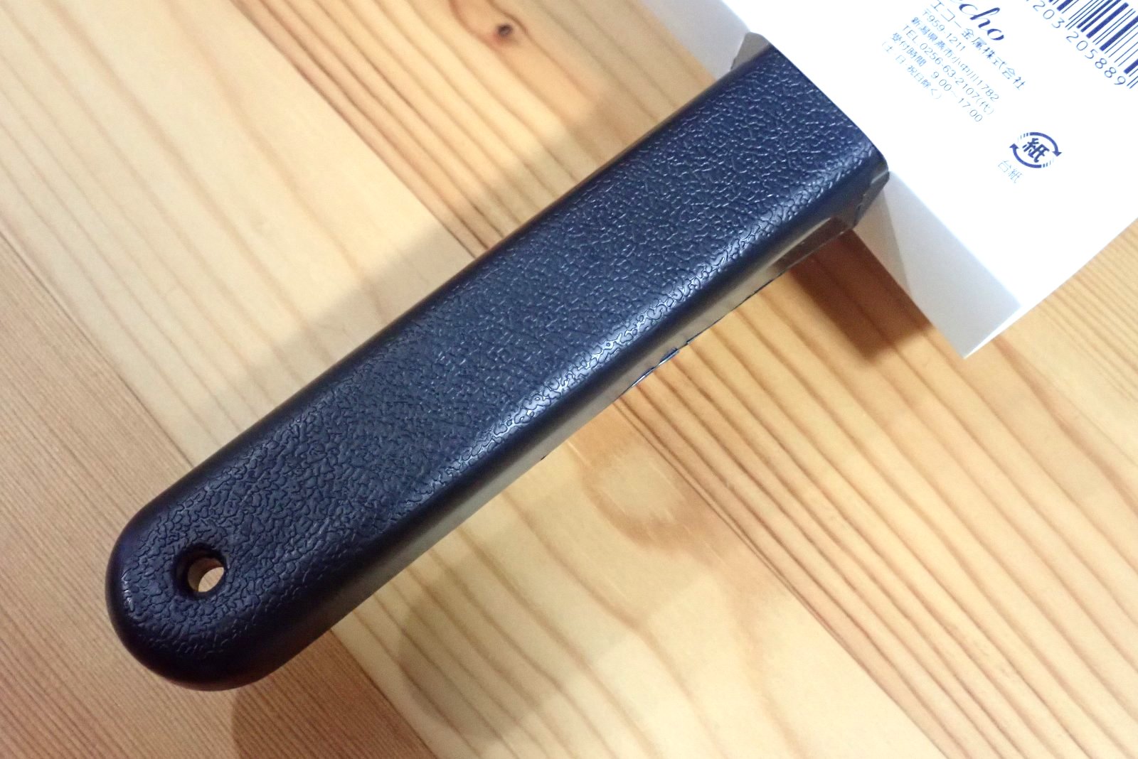 グリップ部分、ちゃんと滑り止め加工がされており、ツルツルってことはないです。さすがエコー金属。また、紐を通す穴も、バリなどなく、丁寧な仕上げとなっています。