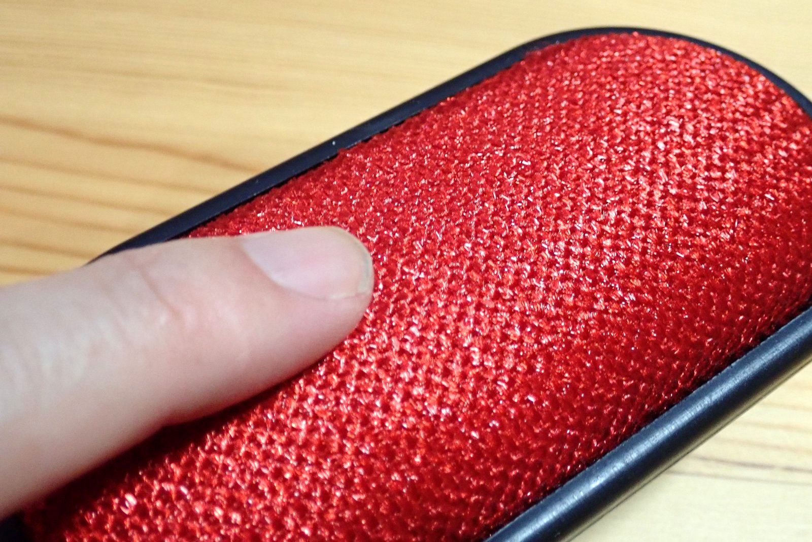 ブラシ部分の拡大写真です。触るとわかるのですが、短い動物の毛のような感じで、撫でやすい方向と引っかかる方向(摩擦を感じる方向)があります。