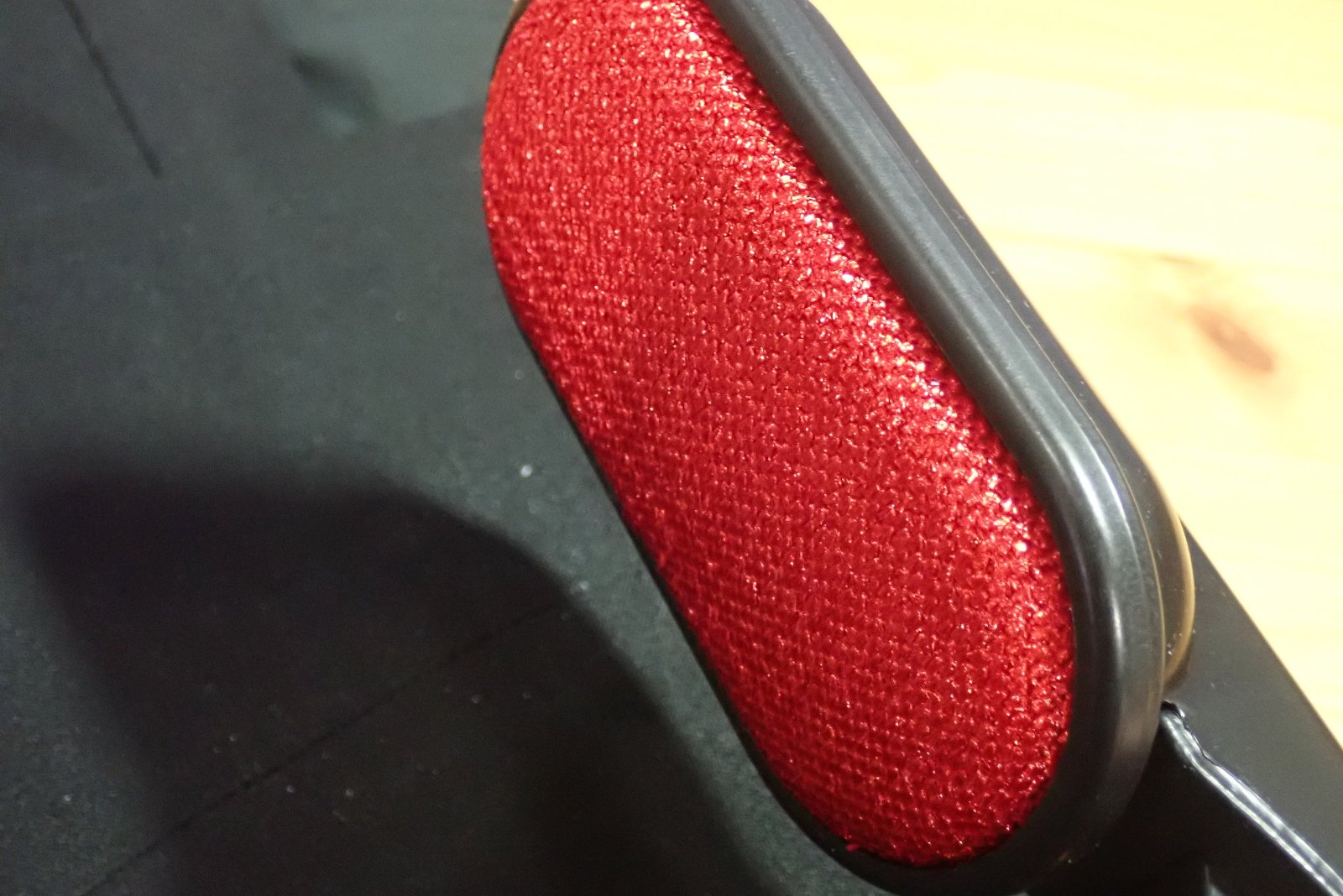 それでは、ブラシ部分を回転させてみます。先にも書きましたが、この手のブラシ、ブラッシング方向がありまして、摩擦を感じる方向で衣類を撫でないとホコリを取ることができません。