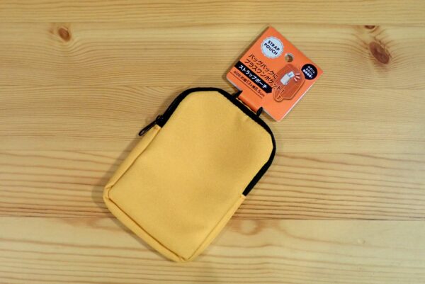 バッグやバックパックにポケットティッシュとか、ちょっとしたものを追加で入れるポケットを追加したくて、薄型のストラップポーチを購入しました。これが、見た目の安っぽさもなく、また、有名どころの製品と比較して、ポーチがかなり薄く、使い勝手良好です。あ、実は、本当の目的は……。