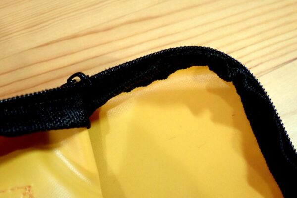 内側への折り返しも多めに取られており、ジッパーを動かす時に、中に入れた物が傷つく心配は少な目かなって思います。