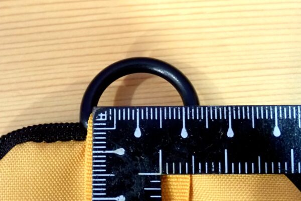 Dカンの内径も実測してみました。カラビナなどを付け足す場合の参考になれば幸いです。